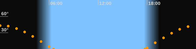 Höchster Stand (Kulmination)00:05 Uhr (h = 43.4°)