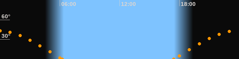 Höchster Stand (Kulmination)23:48 Uhr (h = 43.2°)