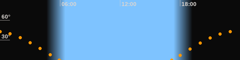 Höchster Stand (Kulmination)23:30 Uhr (h = 43°)