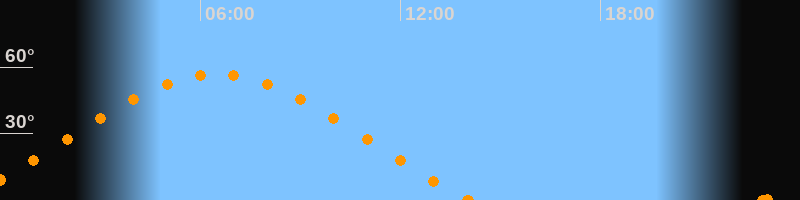 Höchster Stand (Kulmination)06:29 Uhr (h = 56.9°)