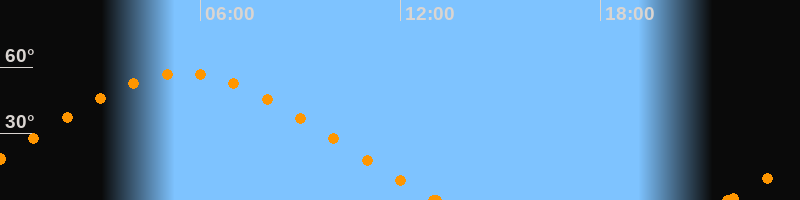 Höchster Stand (Kulmination)05:28 Uhr (h = 57.2°)
