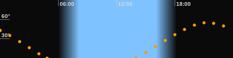 Aufgang13:59 Uhr im Nordosten (αAz = 63.8°)