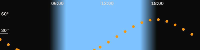 Höchster Stand (Kulmination)18:43 Uhr (h = 55.1°)