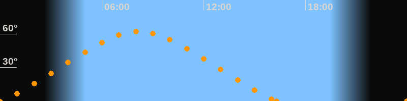 Höchster Stand (Kulmination)08:11 Uhr (h = 62.1°)