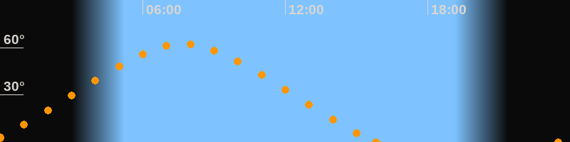 Höchster Stand (Kulmination)07:41 Uhr (h = 62.2°)