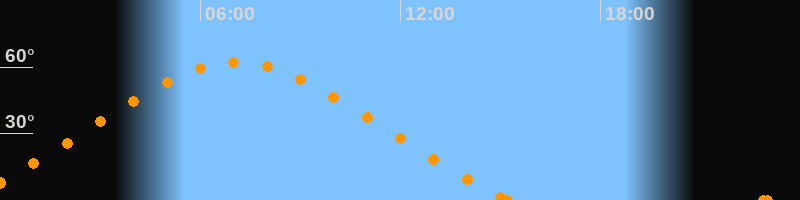 Höchster Stand (Kulmination)07:05 Uhr (h = 62.2°)