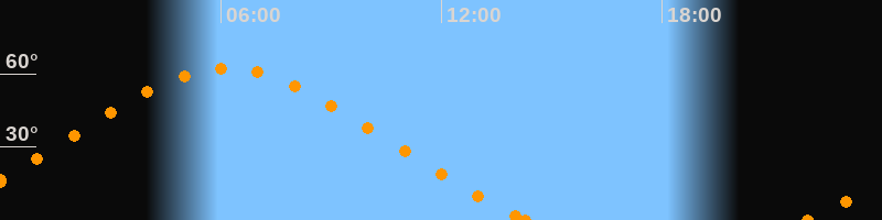 Höchster Stand (Kulmination)06:10 Uhr (h = 62.2°)