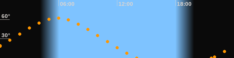 Höchster Stand (Kulmination)05:52 Uhr (h = 62.2°)