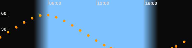 Höchster Stand (Kulmination)05:41 Uhr (h = 62.2°)
