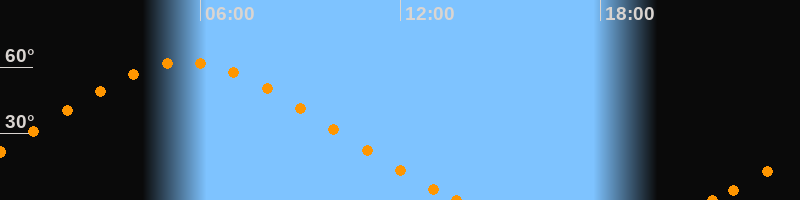 Höchster Stand (Kulmination)05:33 Uhr (h = 62.2°)