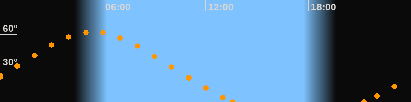 Höchster Stand (Kulmination)05:26 Uhr (h = 62.2°)