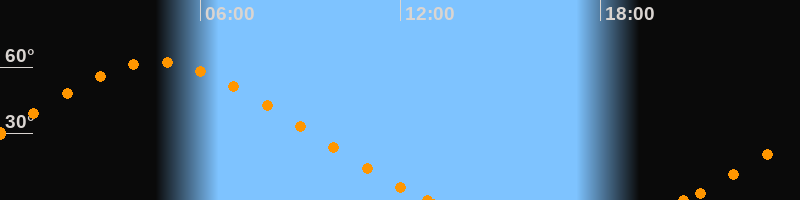 Höchster Stand (Kulmination)04:41 Uhr (h = 62.2°)