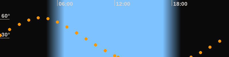 Höchster Stand (Kulmination)04:13 Uhr (h = 62.2°)