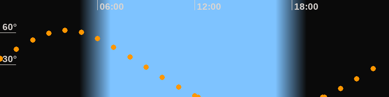 Höchster Stand (Kulmination)04:05 Uhr (h = 62.2°)