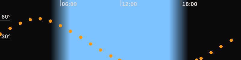 Höchster Stand (Kulmination)03:45 Uhr (h = 62.2°)