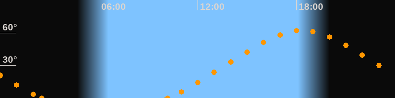 Höchster Stand (Kulmination)18:20 Uhr (h = 62.3°)