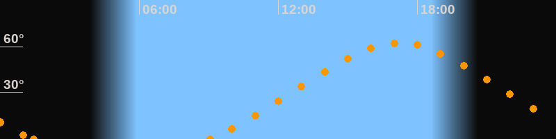 Höchster Stand (Kulmination)17:13 Uhr (h = 62.4°)