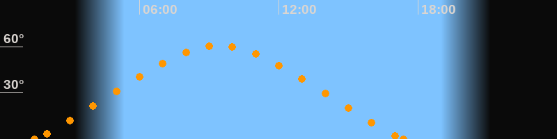 Höchster Stand (Kulmination)09:25 Uhr (h = 60.5°)