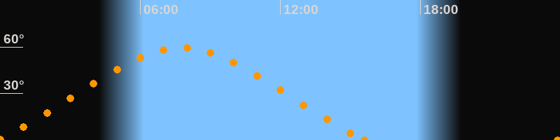 Höchster Stand (Kulmination)07:46 Uhr (h = 59.6°)