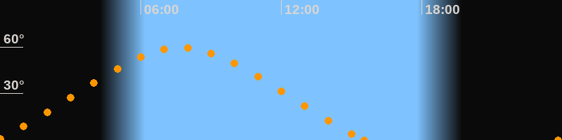 Höchster Stand (Kulmination)07:42 Uhr (h = 59.5°)
