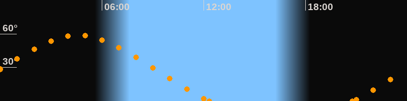 Höchster Stand (Kulmination)04:34 Uhr (h = 58.8°)