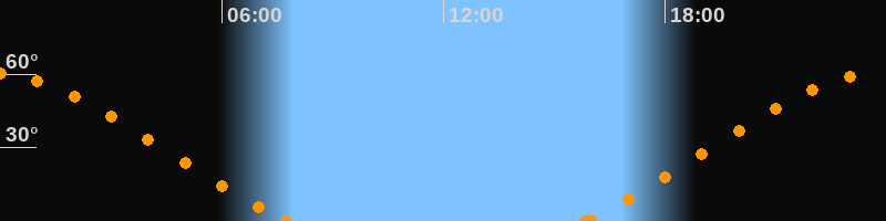 Höchster Stand (Kulmination)23:46 Uhr (h = 60.3°)