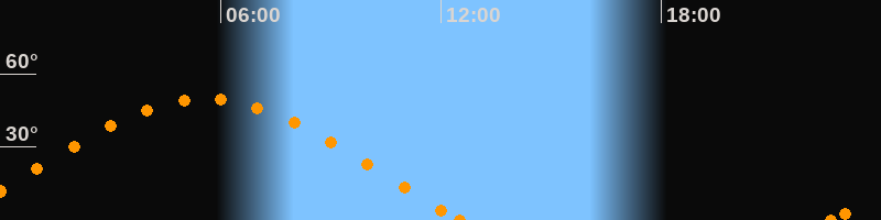 Höchster Stand (Kulmination)05:35 Uhr (h = 49.7°)