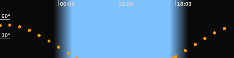 Höchster Stand (Kulmination)00:43 Uhr (h = 51.6°)