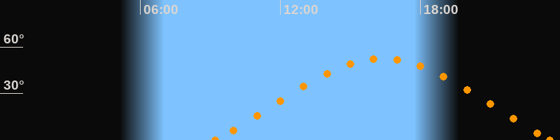 Höchster Stand (Kulmination)16:23 Uhr (h = 52.6°)