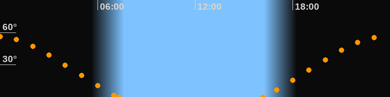 Höchster Stand (Kulmination)23:42 Uhr (h = 56.5°)