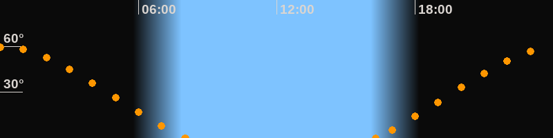 Höchster Stand (Kulmination)00:07 Uhr (h = 59.6°)