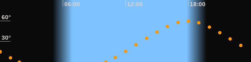 Höchster Stand (Kulmination)17:56 Uhr (h = 59.4°)
