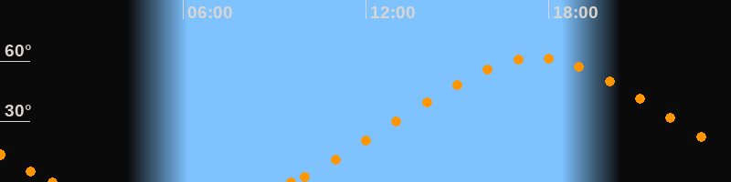 Höchster Stand (Kulmination)17:36 Uhr (h = 61.5°)