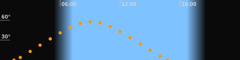 Höchster Stand (Kulmination)09:05 Uhr (h = 57.6°)
