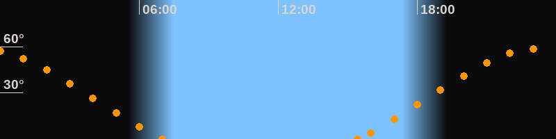 Höchster Stand (Kulmination)23:10 Uhr (h = 58.6°)