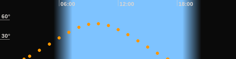 Höchster Stand (Kulmination)09:45 Uhr (h = 54.3°)