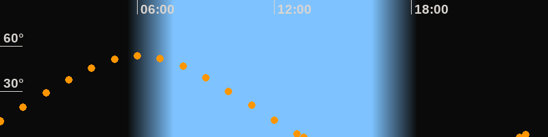 Höchster Stand (Kulmination)06:04 Uhr (h = 53.5°)