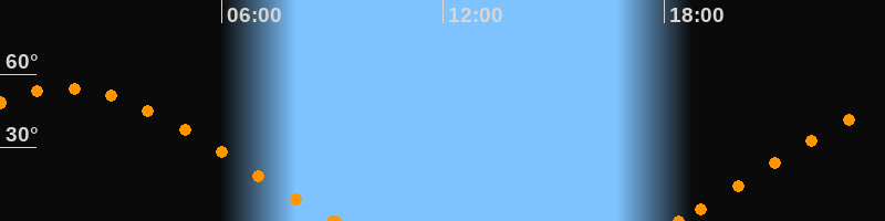 Höchster Stand (Kulmination)01:46 Uhr (h = 54.2°)