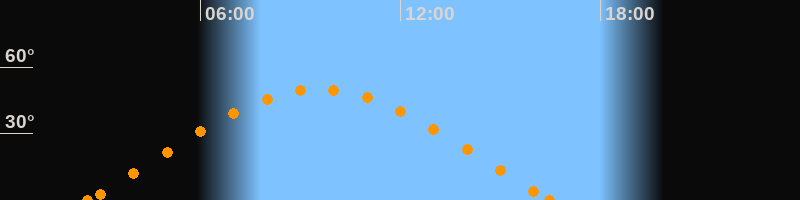 Höchster Stand (Kulmination)09:33 Uhr (h = 49.9°)