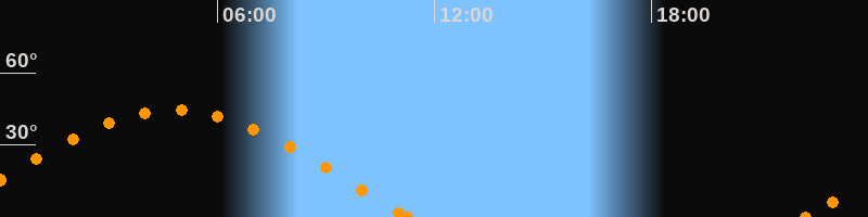 Höchster Stand (Kulmination)04:47 Uhr (h = 44.4°)
