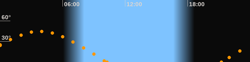 Höchster Stand (Kulmination)03:47 Uhr (h = 44.6°)