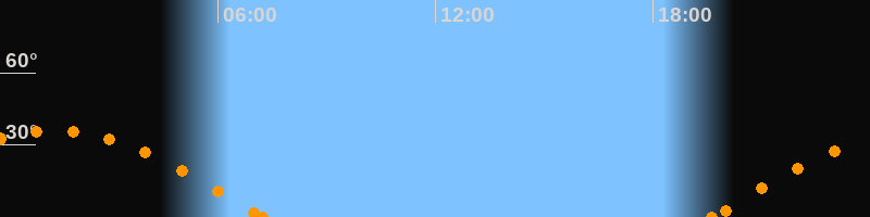 Aufgang19:38 Uhr im Osten (αAz = 94.7°)