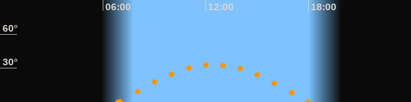 Höchster Stand (Kulmination)12:26 Uhr (h = 33.1°)