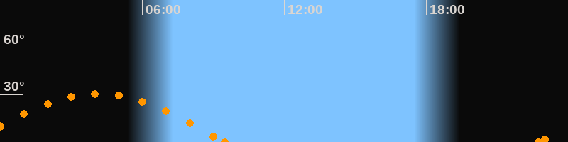 Höchster Stand (Kulmination)04:08 Uhr (h = 30.5°)