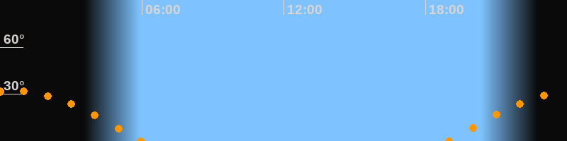 Höchster Stand (Kulmination)00:26 Uhr (h = 32.1°)