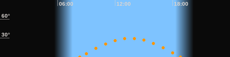 Höchster Stand (Kulmination)13:34 Uhr (h = 29.6°)