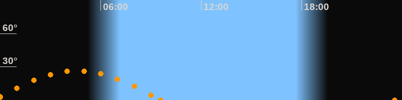 Höchster Stand (Kulmination)04:36 Uhr (h = 26.5°)