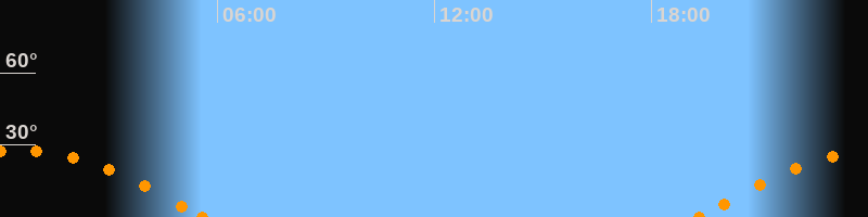 Höchster Stand (Kulmination)00:25 Uhr (h = 27.9°)