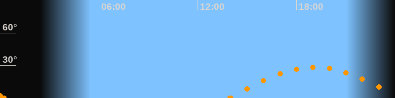 Höchster Stand (Kulmination)19:05 Uhr (h = 28.4°)