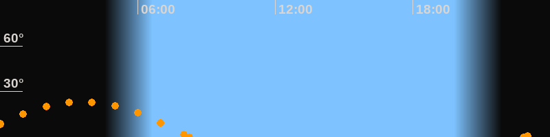 Höchster Stand (Kulmination)03:34 Uhr (h = 23.3°)